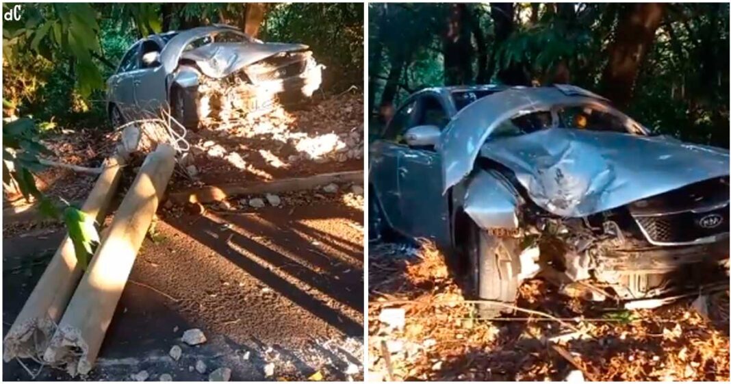 O carro transportava cinco pessoas no momento do acidente, e o impacto foi tão severo que o veículo dividiu o poste em dois. Um dos ocupantes, sofreu ferimentos no rosto em decorrência do acidente.