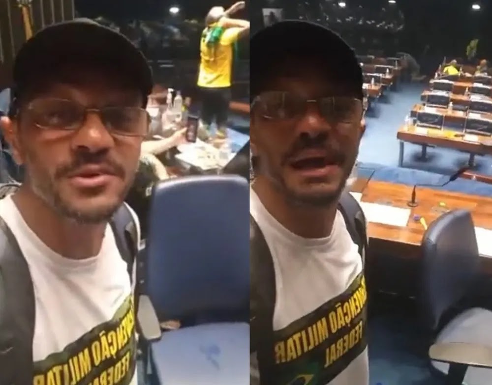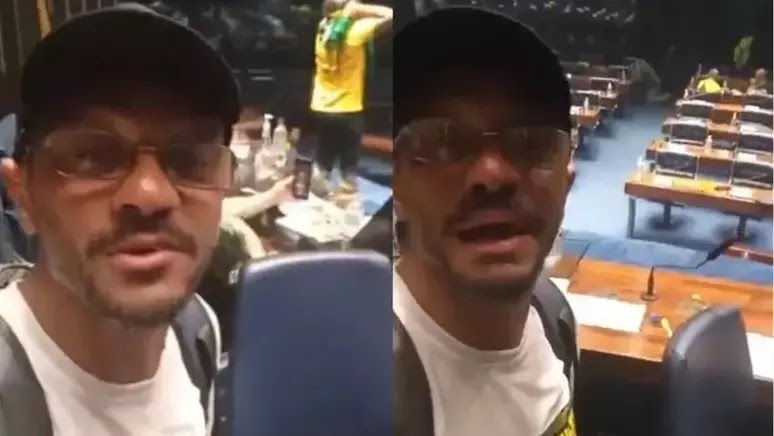 No vídeo feito no Congresso, ele aparece usando uma camiseta com uma estampa pedindo “intervenção militar federal” e diz: “Amigos da Sabesp: quem não acreditou, estamos aqui. Olha onde eu estou: na mesa do presidente. Vai dar certo, não desistam. Saiam às ruas”.