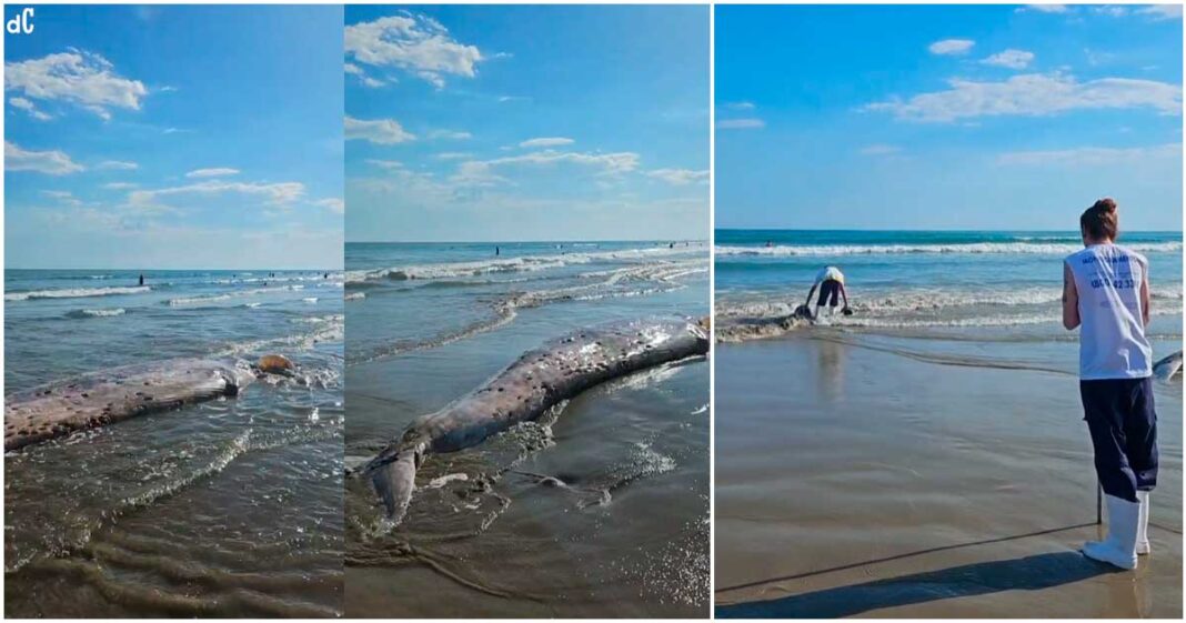 Praia Grande, SP – Na tarde desta terça-feira (16), a carcaça de uma baleia da espécie ainda desconhecida em avançado estado de decomposição foi avistada por quem passava pela Praia da Guilhermina, próxima à Praça Lions, em Praia Grande. O animal encalhado chamou a atenção de banhistas e moradores da região, suscitando ações de investigação por parte do Instituto Biopesca.