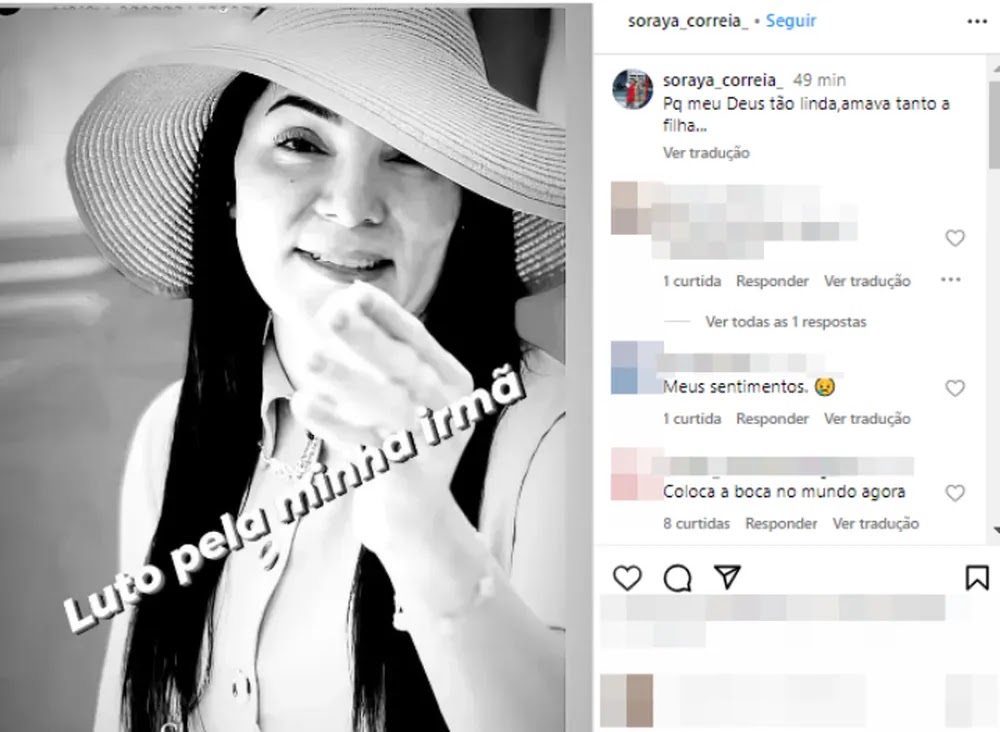 Depois que a polícia encontrou o corpo, mesmo sem a confirmação policial, a irmã de Sara Mariano, Soraya Freitas, fez uma postagem nas redes sociais de luto. “Por que, meu Deus? Tão linda, amava tanto a filha…”, escreveu.