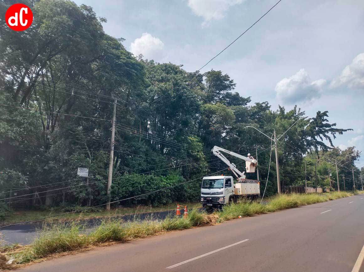 Equipe da companhia de energia realizando manutenção — Foto: Michel Belli/O diário da cidade