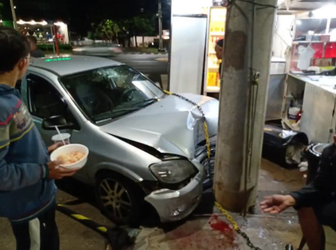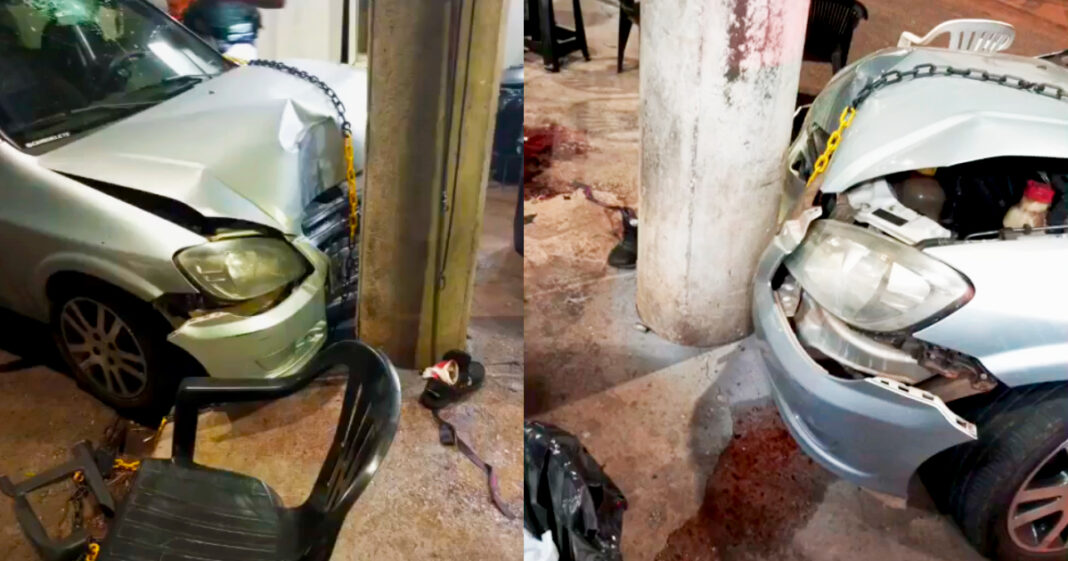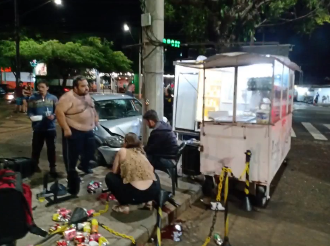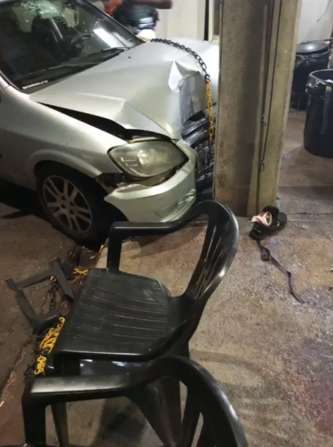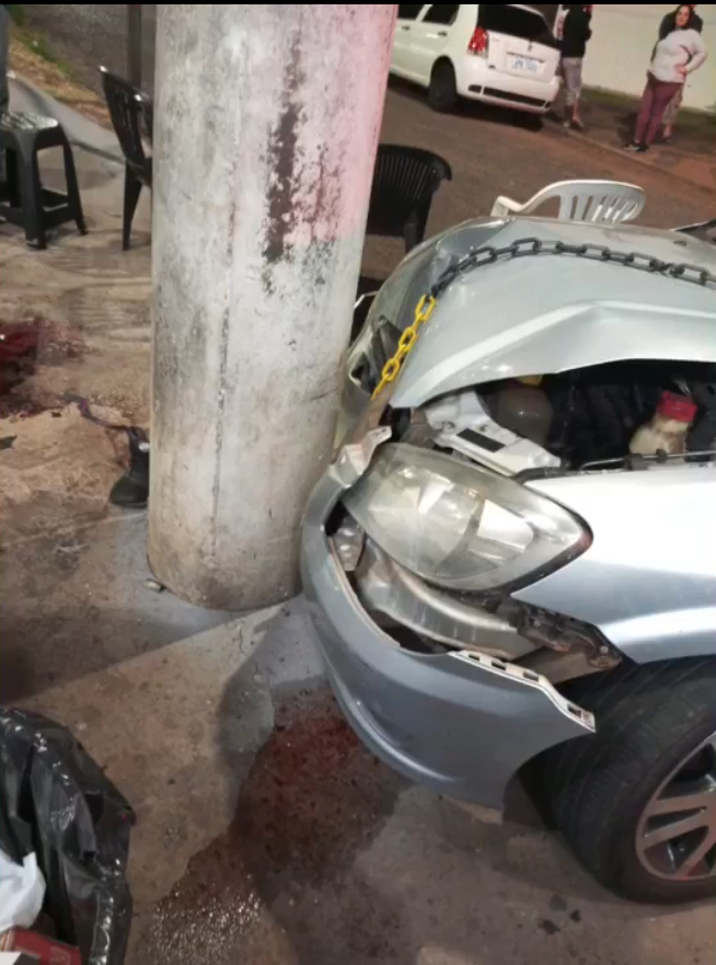 No local havia um carrinho de lanche, a vitima estava sentada quando o veículo desgovernado invadiu a calçada colidiu contra um poste prensando a perna da vítima, causando o esmagamento da perna.