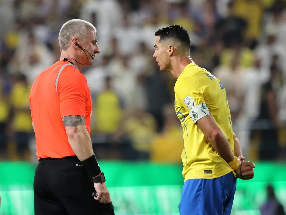 O árbitro brasileiro Anderson Daronco foi alvo da fúria de Cristiano Ronaldo, nesta sexta-feira (22), no duelo entre Al-Nassr e Al-Ahli pela Liga Saudita.