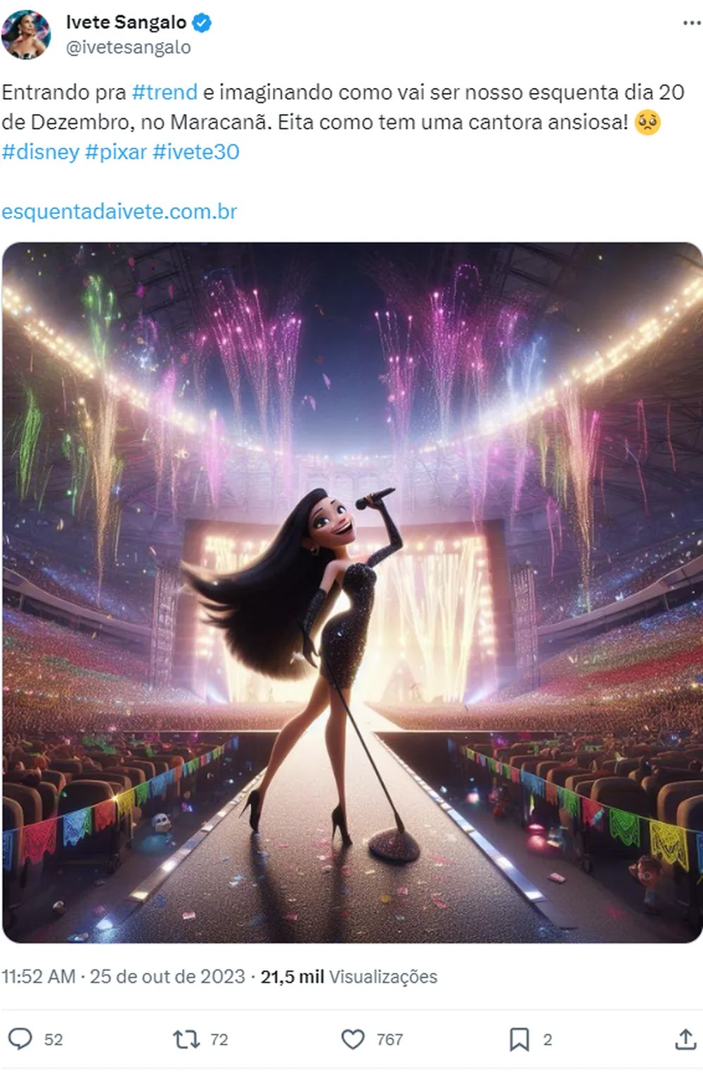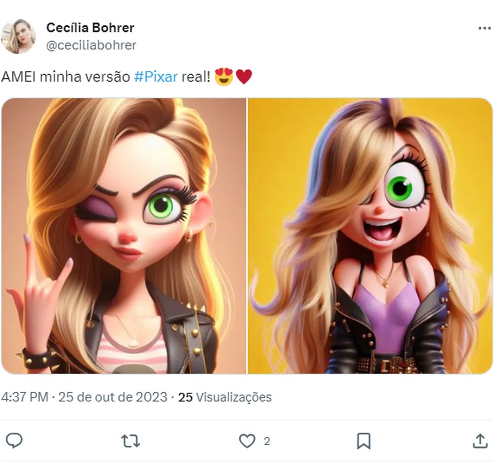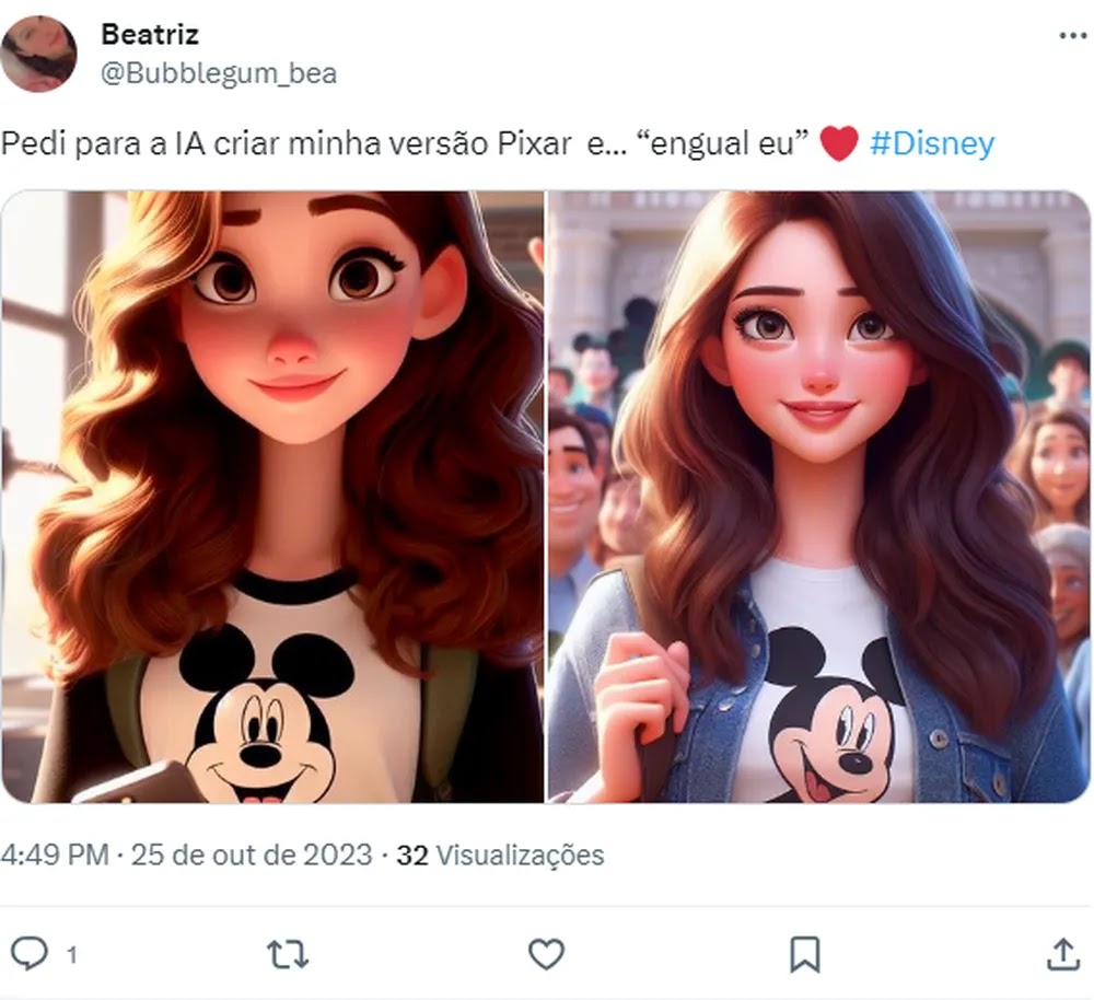 Ivete Sangalo e o produtor de conteúdo Ivan Baron são alguns dos famosos que compartilharam suas versões, feitas pela Inteligência Artificial (veja ao final da reportagem). As ilustrações se assemelham às grandes animações da companhia audiovisual, como “Frozen”, “Moana” e “Toy Story”.