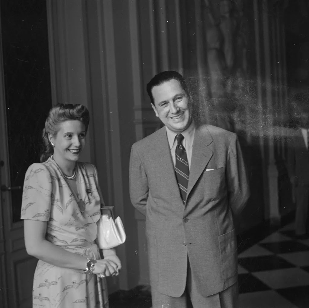 | Juan Domingo Perón, ex-presidente da Argentina, e sua esposa, “Evita” Michel Belli colorido por IA |