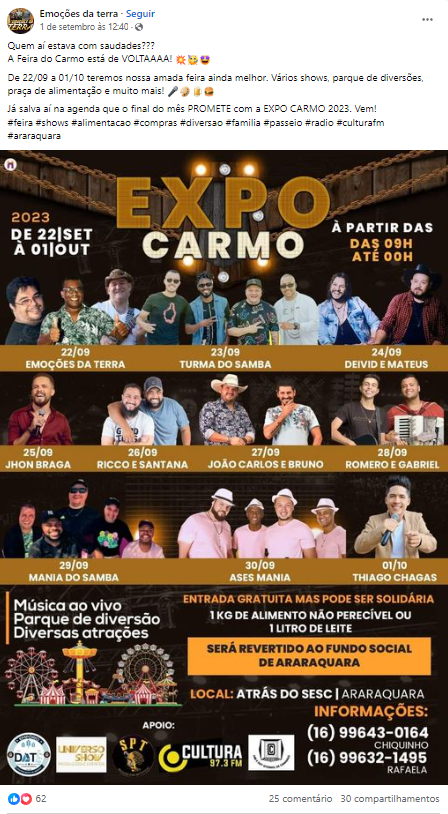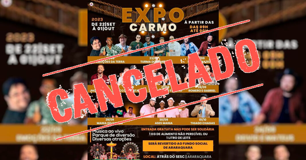 Uma festa denominada como Expo Carmo foi cancelada devido a falta de alvarás de funcionamento nesta sexta-feira 22 de setembro em Araraquara.