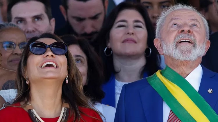 Acompanhado de Janja, Lula observa apresentação aérea em Brasília Imagem: ADRIANO MACHADO/REUTERS