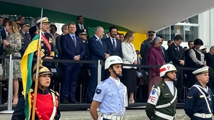 • O presidente desfilou na capital federal para um público estimado de 50 mil pessoas, segundo a Polícia Militar do DF. A cerimônia foi menos concorrida que em anos anteriores, quando apoiadores do ex-presidente Bolsonaro mobilizavam suas bases para o evento.