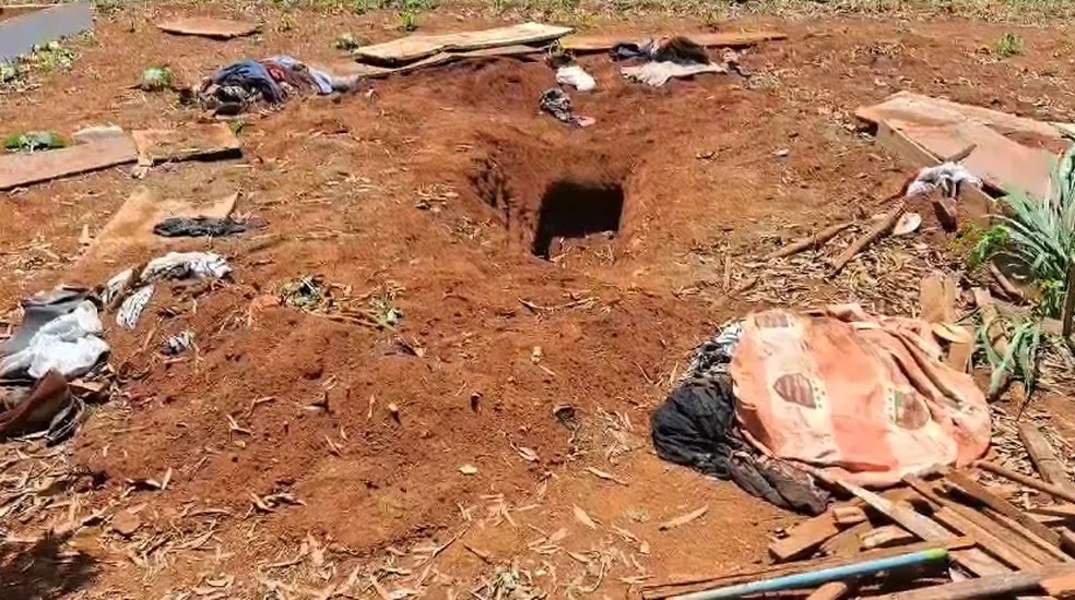 Os restos mortais da mulher foram enterrados na cova de Santa Cruz das Palmeiras. Imagem: José Carlos Bizaia/TV SuperAtiva