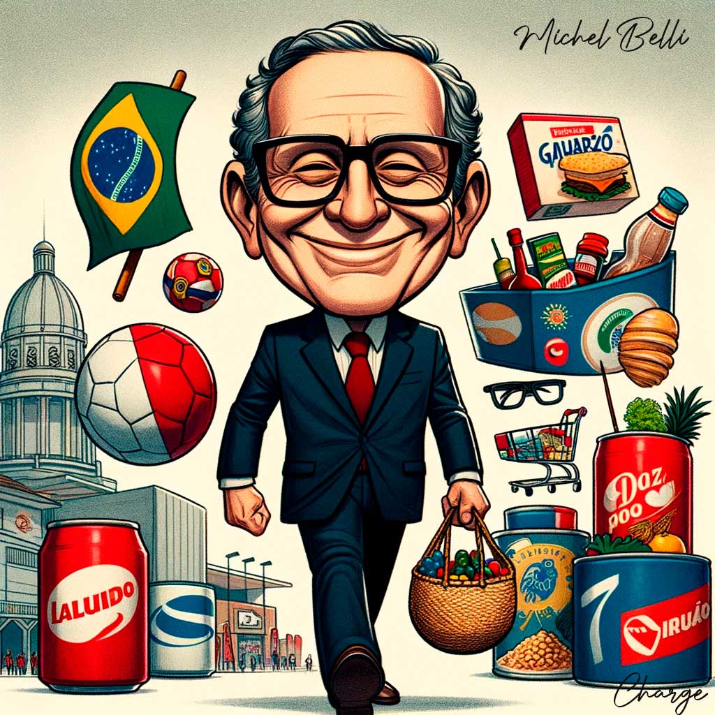 | A charge foi criada em homenagem a Abilio Diniz, destacando seu impacto no varejo brasileiro e suas paixões – Charge (Michel Belli) |