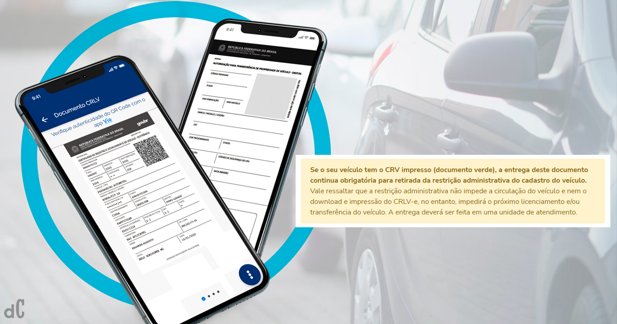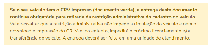 Em todos os casos citados, quando há uma restrição no veículo, o CRLV (Certificado de Registro e Licenciamento do Veículo) recebe essa informação no seu campo de observação.