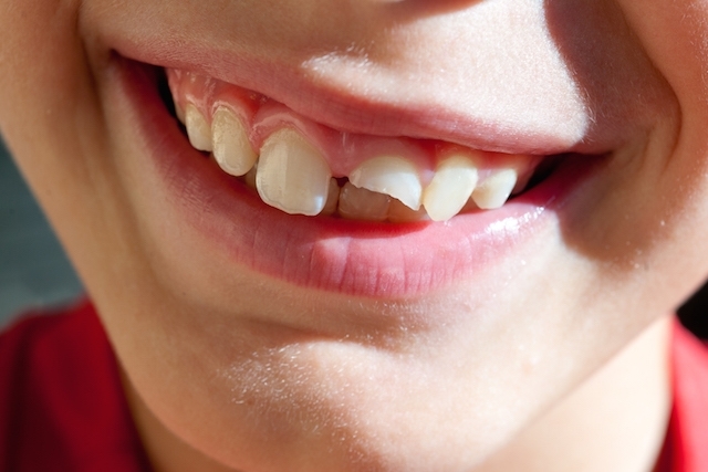 O dente quebra ou fica rachado após uma queda ou acidente, o que geralmente provoca algum sangramento na gengiva, e nesse caso o que se deve fazer é parar a hemorragia, colocando uma gaze molhada em água fria sobre o local e pressionar durante alguns minutos. Isso normalmente é eficaz e controla o sangramento em poucos minutos, mas ainda assim, o mais sensato é ir ao dentista para poder restaurar o dente.