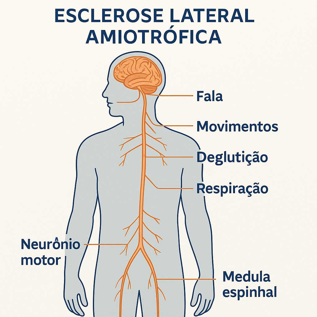 A Esclerose Lateral Amiotrófica (ELA) é uma doença neurológica rara, progressiva e degenerativa que atinge os neurônios motores — células nervosas que controlam os movimentos voluntários dos músculos. Esses neurônios estão localizados no cérebro, no tronco encefálico e na medula espinhal. À medida que eles degeneram, o cérebro perde a capacidade de iniciar e controlar os movimentos musculares.