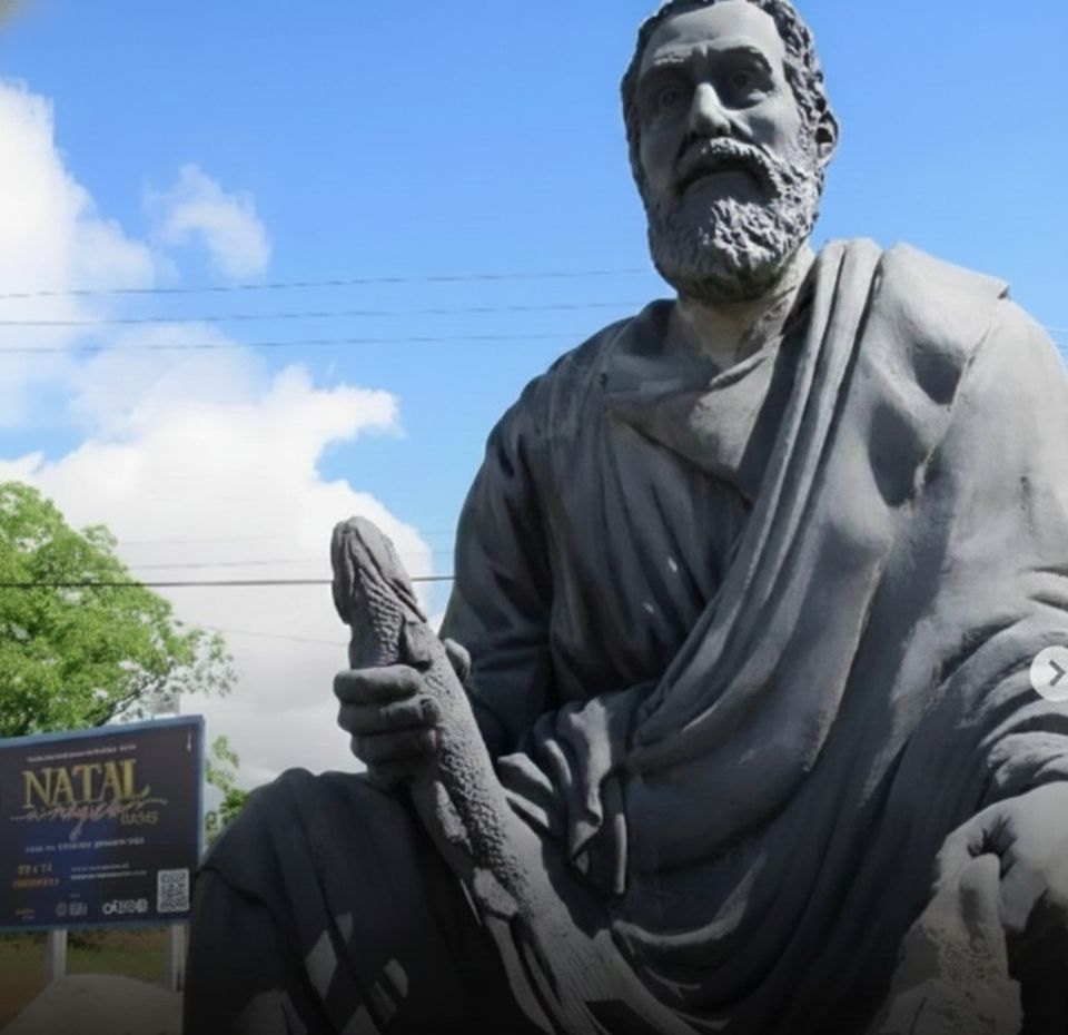 A estátua do apóstolo São Pedro, padroeiro dos pescadores e conhecido na tradição católica como o “Santo da Chuva”, passou a marcar a paisagem de São Pedro do Sul, no interior do Rio Grande do Sul. Instalada no trevo de acesso ao município, a obra se transformou em um novo ponto de referência visual da cidade — e também em motivo de debate entre moradores.