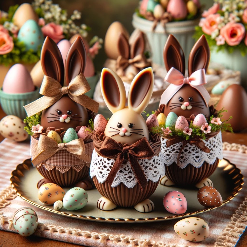 4. Coelhinhos de Chocolate Artesanais: Criação de chocolates em formatos de coelhinhos e outros símbolos pascais feitos à mão.
