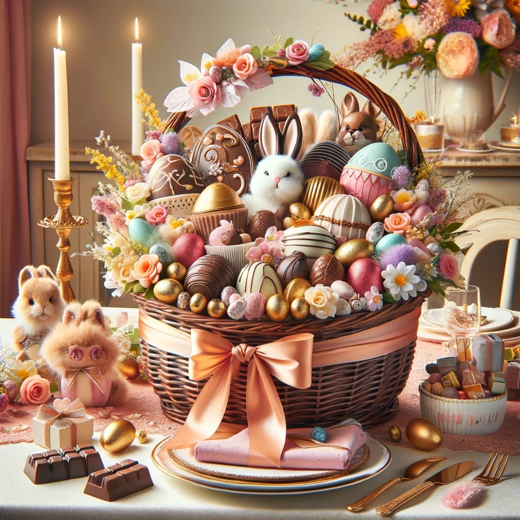 1. Cestas de Páscoa Personalizadas: Montagem de cestas temáticas com ovos de chocolate, coelhinhos de pelúcia e produtos artesanais.