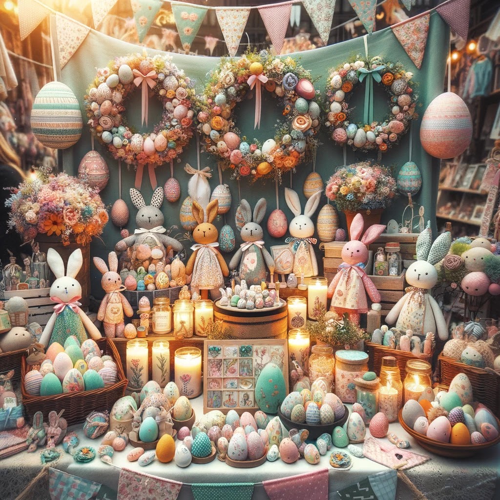 10. Artesanato e Decoração de Páscoa: Criação e venda de decorações pascais artesanais, como guirlandas, coelhinhos de tecido e velas temáticas.