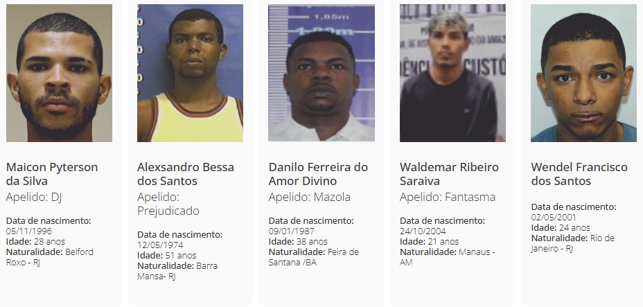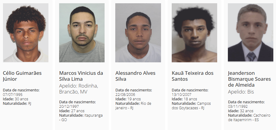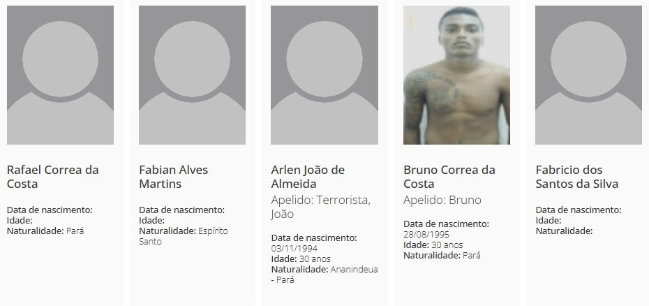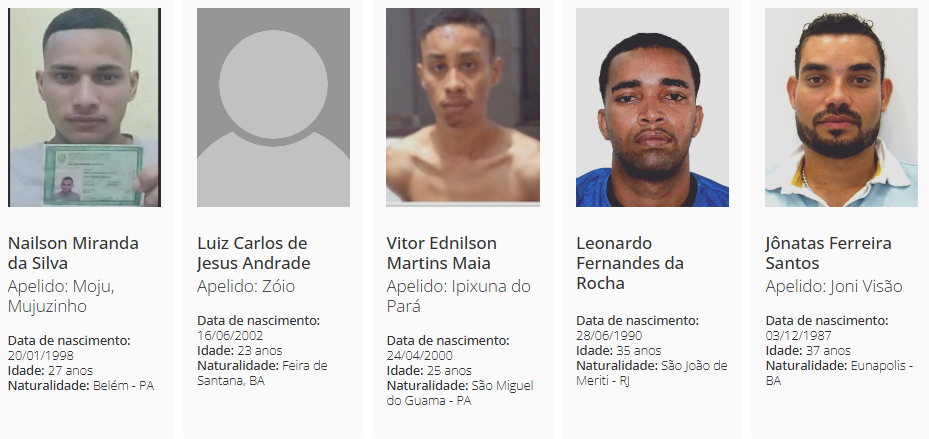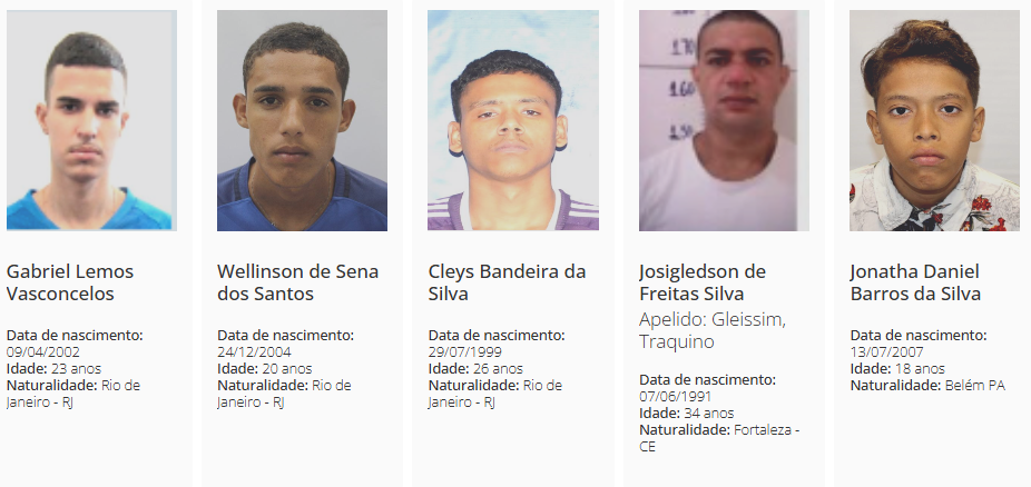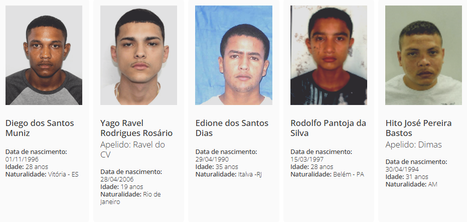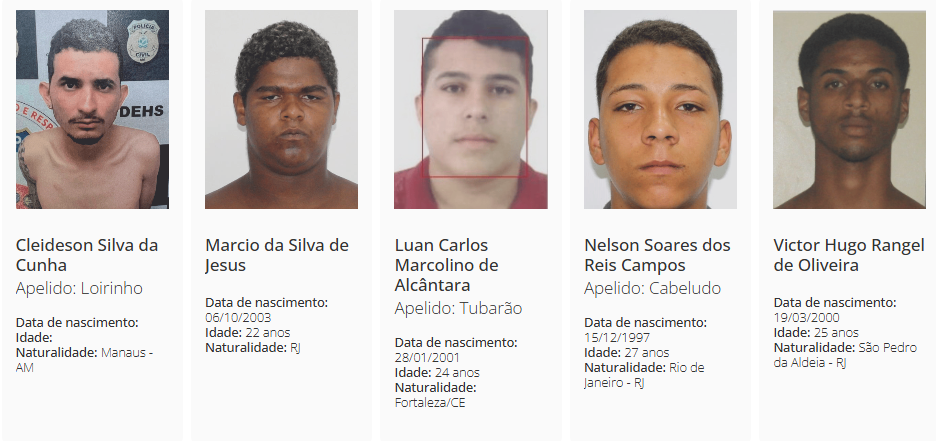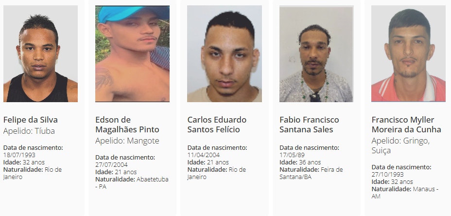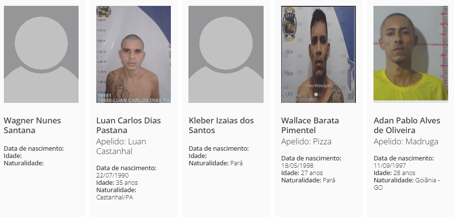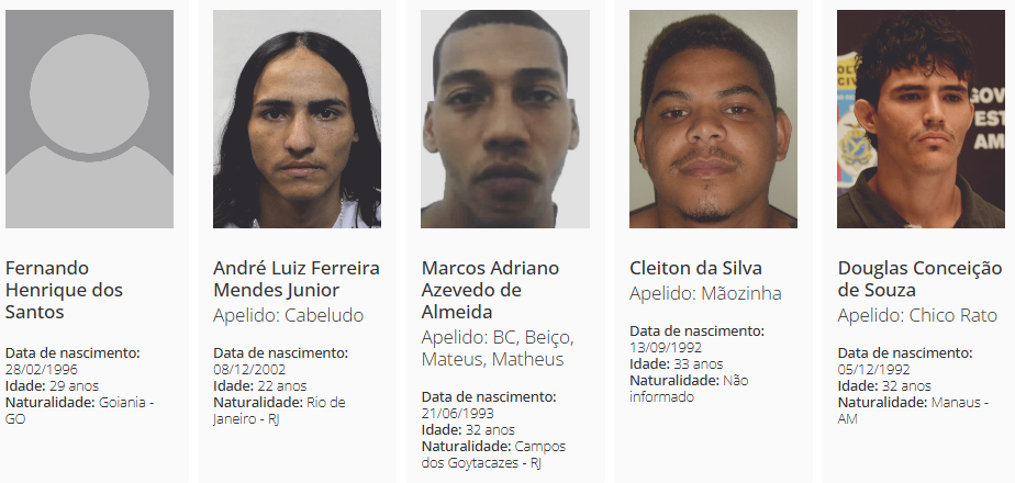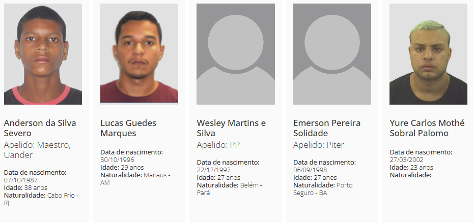 Os dados revelam que 54 dos identificados eram oriundos de outros estados brasileiros. Entre eles, 15 do Pará, 11 da Bahia, 9 do Amazonas, 7 de Goiás, 4 do Ceará, 4 do Espírito Santo, 2 da Paraíba, 1 de São Paulo e 1 do Mato Grosso. Outros 43 estavam foragidos da Justiça e 26 tinham antecedentes criminais. Três dos mortos possuíam anotações infracionais por atos cometidos ainda na adolescência.