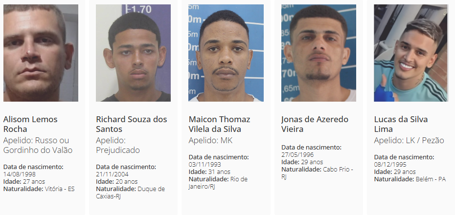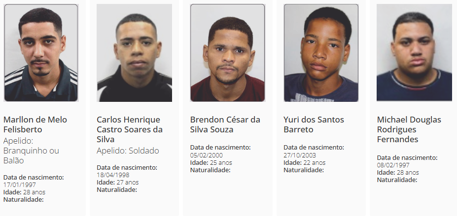 Sete dos identificados não tinham histórico criminal registrado, mas, segundo a polícia, apresentavam forte envolvimento com o tráfico de drogas nas redes sociais. Outros 20 ainda não têm nenhum vínculo comprovado com organizações criminosas até o momento.