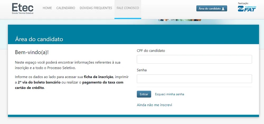 Interessados em se inscrever no vestibulinho das Etecs devem se cadastrar na “Área do Candidato” — Foto: Reprodução/Etec